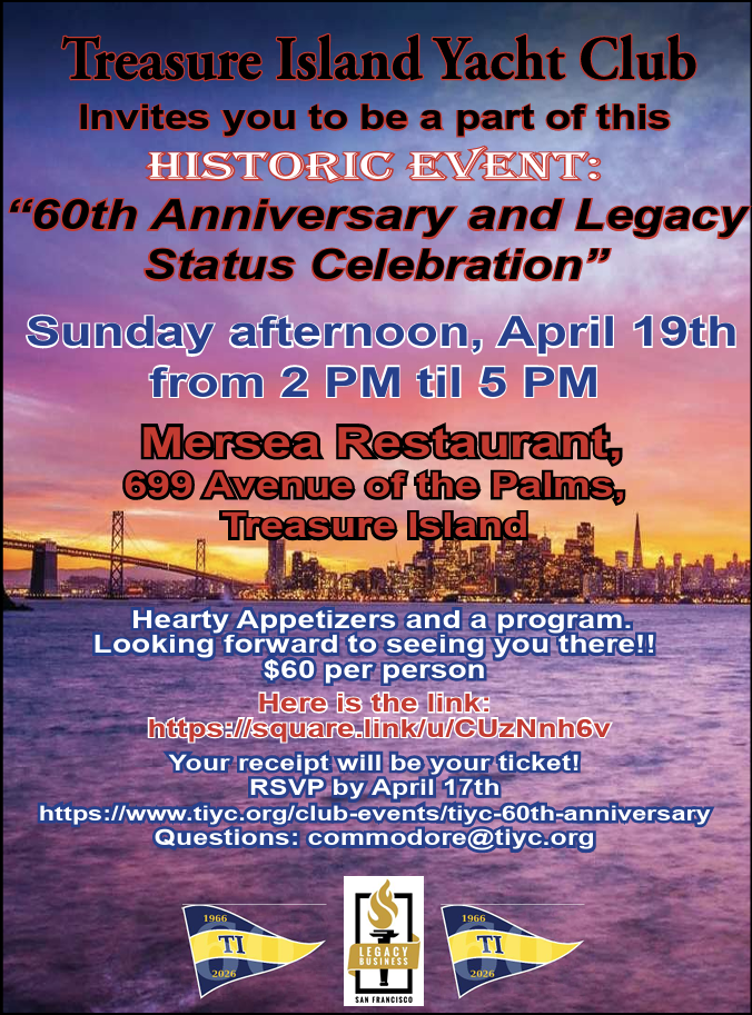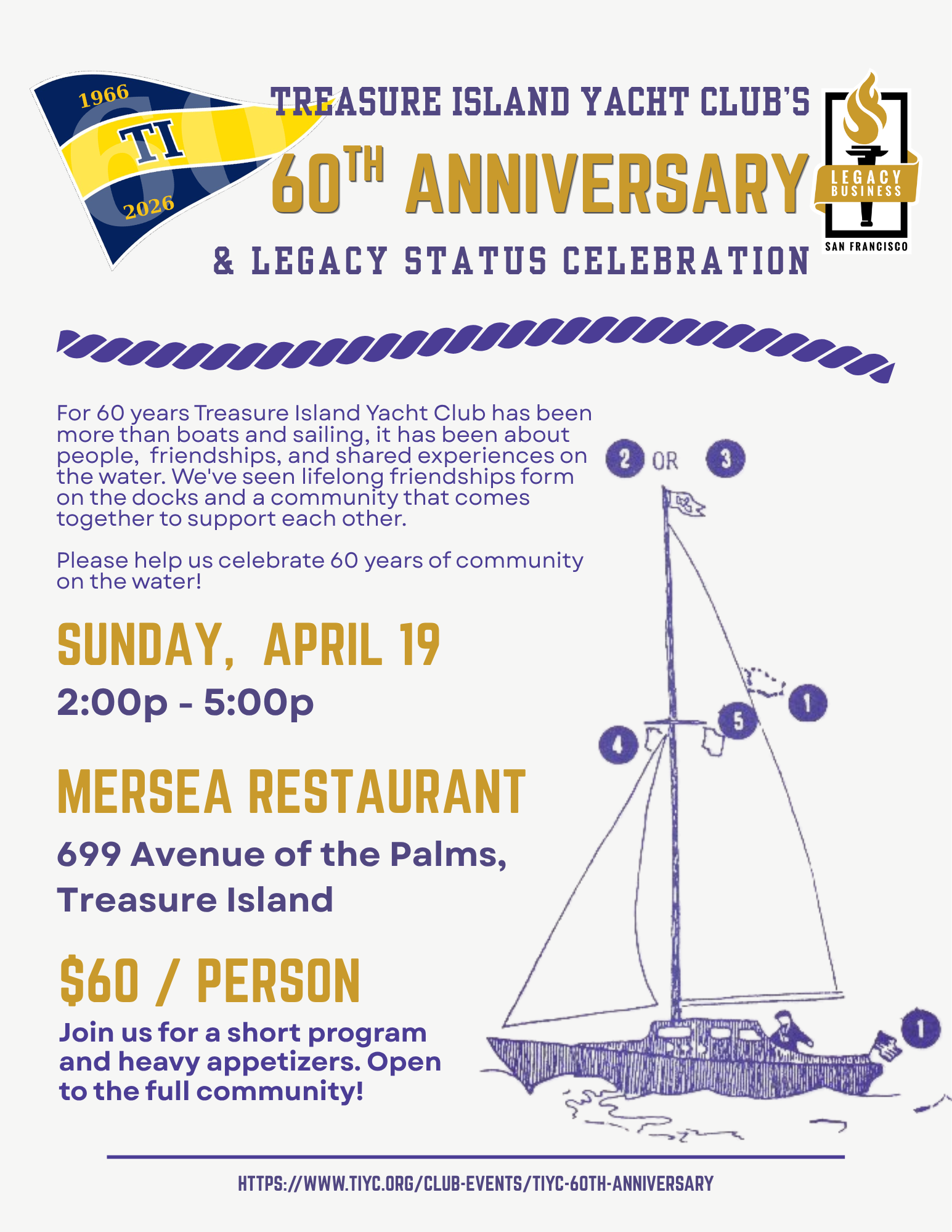 For 60 years Treasure Island Yacht Club has been more than boats and sailing, it has been about people, friendships, and shared experiences on the water. We've seen lifelong friendships form on the docks and a community that comes together to support each other.